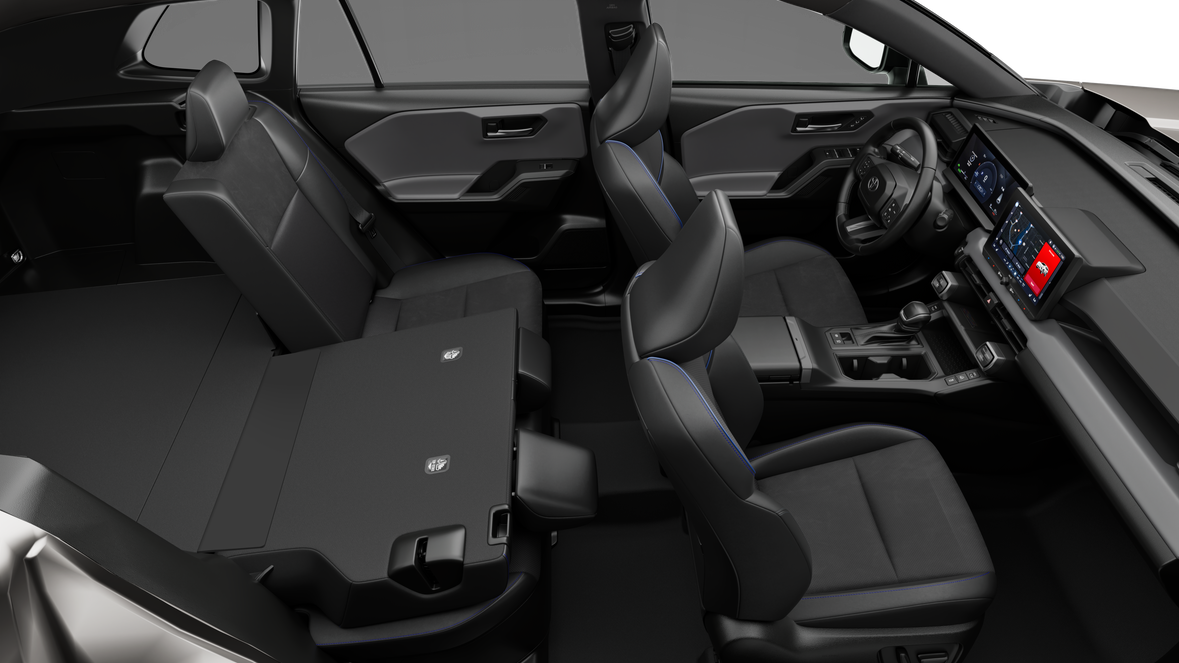 - Center console with covered storage compartment, reversible armrest/console tray, two cup holders, drive mode (Trail, Snow, Normal and EV mode ), auto LSD/VSC, Electric Parking Brake (EPB) and automatic Brake Hold controls, and front storage tray
