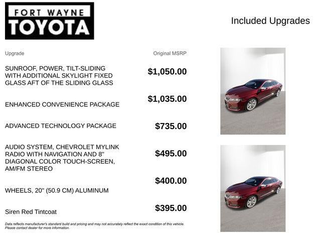 Whether you're seeking a stylish, feature-rich sedan for your daily driving or a versatile family vehicle, this 2017 Chevrolet Impala Premier 2LZ is an exceptional choice. Visit us at Fort Wayne Toyota today to experience this remarkable automobile firsthand and discover why it's the perfect fit for your needs.