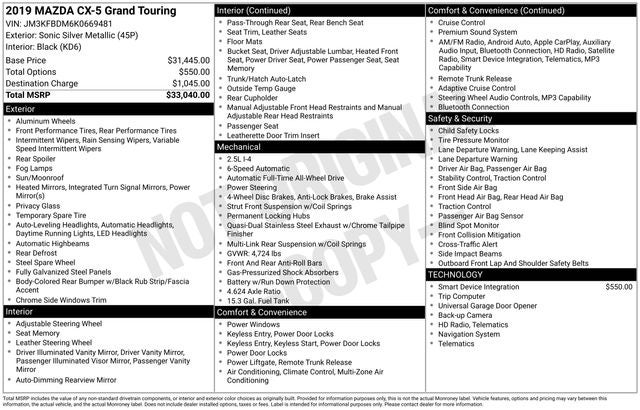 2019 Mazda CX-5 Grand Touring Sonic Silver Metallic AWD Clean CARFAX.