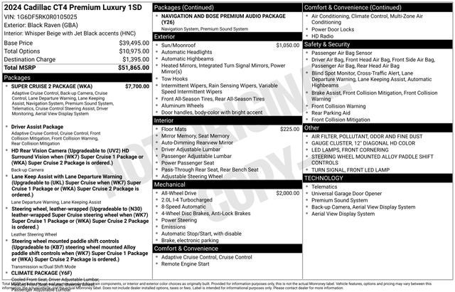 This stunning 2024 Cadillac CT4 Premium Luxury boasts an impressive array of premium features that elevate the driving experience. Highlights include: